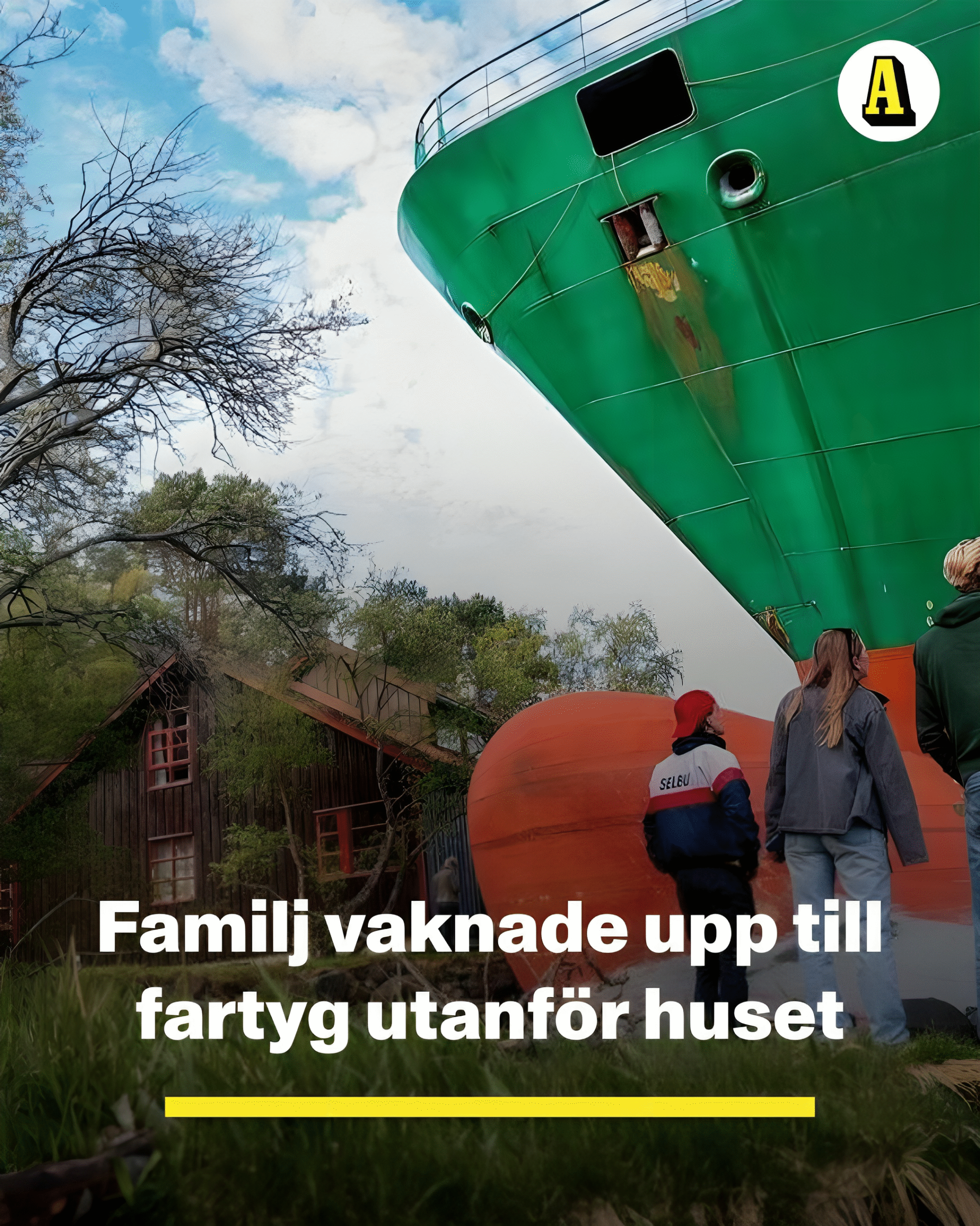 Det var en granne som knackade på och frågade familjen Helberg om de inte hade sett att det stod ett gigantiskt fartyg vid husväggen.