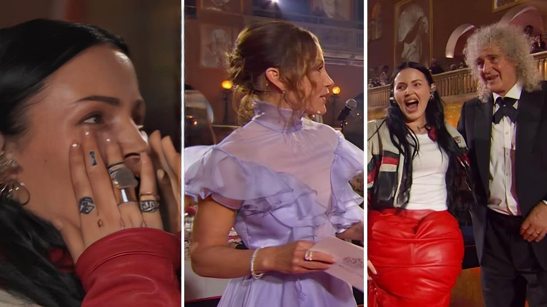 Mitt i livesändning går Brian May fram till Miriam Bryant.